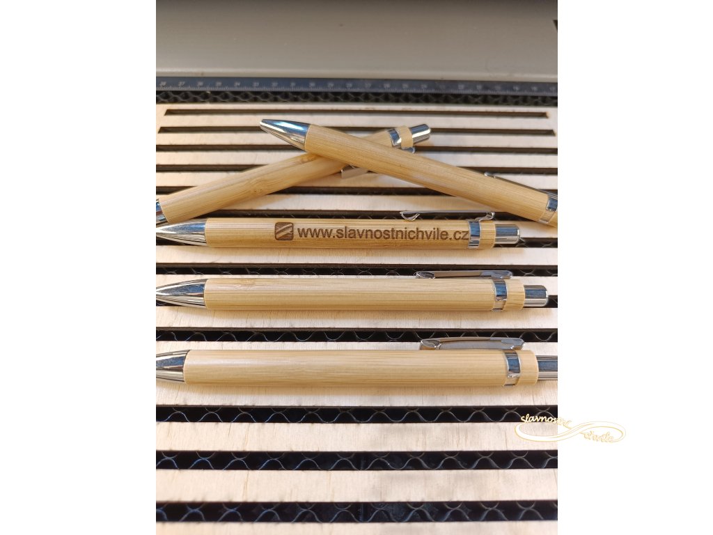 Dřevěná bambusová propiska jako originální dárek pro svatebčany.